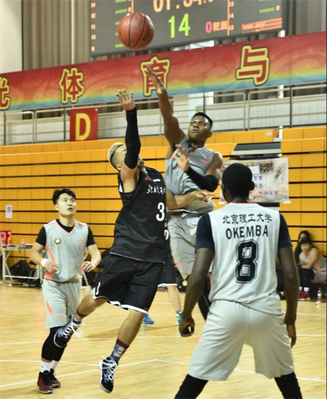 我校派出由12名留學生組成的男子籃球隊參賽。小伙子們表現出色,一路高歌猛進,先后戰勝俄羅斯隊、北京信息科技大學和寶馬公司,以小組第一的不敗戰績出線。在八強賽中遇到實力不容小覷的首都外事聯隊,同學們不懼強敵,穩扎穩打,以團結的精神、默契的配合始終把握比賽節奏。最后以10分的優勢拿下這關鍵的一戰。11月6日與北京交通大學進行了半決賽。比賽一開始,兩隊都突顯出強勁的實力,比分一度咬得很緊,但由于主力受傷,罰球失誤等問題,最終以六分之差惜敗。賽后小伙子們都傷心不已,覺得自己沒有拼盡全力,未能給北理爭取榮譽。他們奮不顧身的拼搏精神和極強的集體榮譽感令我們感動。北理工留學生男子籃球隊僅僅成立一年,能取得這樣的成績實屬不易。相信在未來的時間里,經過更系統的指導和訓練,我們定會取得更優異的成績。沒關系,小伙子們,我們明年再來!