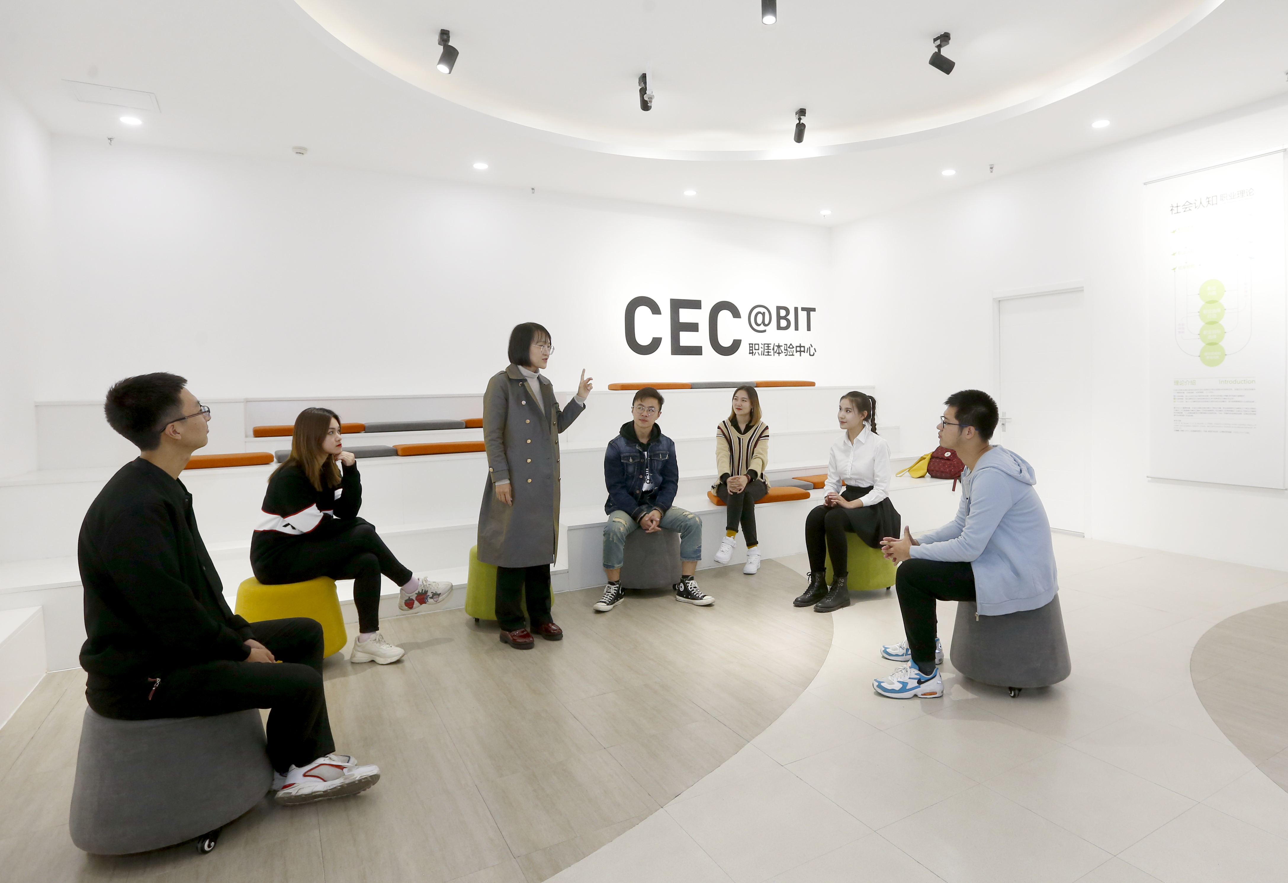 學(xué)校在全國高校中率先建設(shè)了大學(xué)生職業(yè)生涯教育主題空間,該空間面積660平方米,集職業(yè)生涯體驗中心、朋輩輔導(dǎo)空間、咨詢室、督導(dǎo)室、工作室、面試室及學(xué)生活動大廳七大功能區(qū)域為一體。研發(fā)了寓教于樂的生涯探索工具,滿足教學(xué)、咨詢、輔導(dǎo)等不同需求,打造學(xué)生自我探索和教師開展教學(xué)活動的專業(yè)化空間,實現(xiàn)了職業(yè)生涯教育體驗式、開放式、融合式落地。同時,學(xué)校持續(xù)打造線上教育資源矩陣,開發(fā)了108門在線精品課程,創(chuàng)建了職業(yè)生涯發(fā)展公眾號“啞琴有聲”,與就業(yè)信息網(wǎng)、“北理就業(yè)”公眾號,共同構(gòu)成線上教育資源矩陣,實現(xiàn)了全方位不間斷教育資源供給。