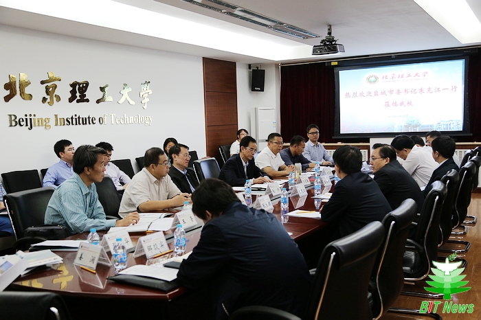 2014年9月23日,江蘇省鹽城市委書記朱克江、副市長(zhǎng)張京麒率團(tuán)訪問北京理工大學(xué),校黨委書記張煒會(huì)見了朱克江一行。參加座談的還有鹽城市委辦公廳、市科技局、亭湖區(qū)、環(huán)保科技城等相關(guān)部門負(fù)責(zé)人。副校長(zhǎng)孫逢春、副校長(zhǎng)楊樹興,學(xué)校辦公室主任郝志強(qiáng)、科研院常務(wù)副院長(zhǎng)王魯、科技合作部部長(zhǎng)王偉、化工與環(huán)境學(xué)院黨委書記張振華、以及機(jī)械與車輛學(xué)院、生命學(xué)院、電動(dòng)車輛國(guó)家工程實(shí)驗(yàn)室等相關(guān)單位教師參加了會(huì)議。座談會(huì)由副校長(zhǎng)孫逢春主持。
