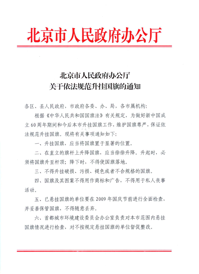 轉發北京市人民政府辦公廳關于依法規范升掛國旗的通知
