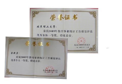 日前,北京市教委召開會議,表彰2009-2010年度北京市教育事業統計工作質量評估優秀集體和優秀個人。我校被評為北京市教育事業統計工作質量評估優秀集體一等獎,學校辦公室榮新巖同志被評為北京市教育事業統計工作質量評估優秀個人一等獎。
