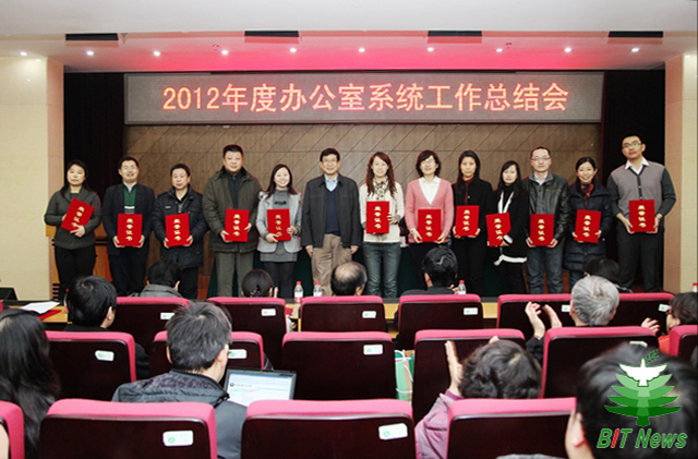 伴隨著北京理工大學校歌的旋律,楊賓副校長宣讀了《北京理工大學關于表彰2012年辦公室系統工作先進集體和先進個人的決定》,機電學院等10個先進集體的代表,宇航學院李振江等24名先進個人先后上臺領獎。