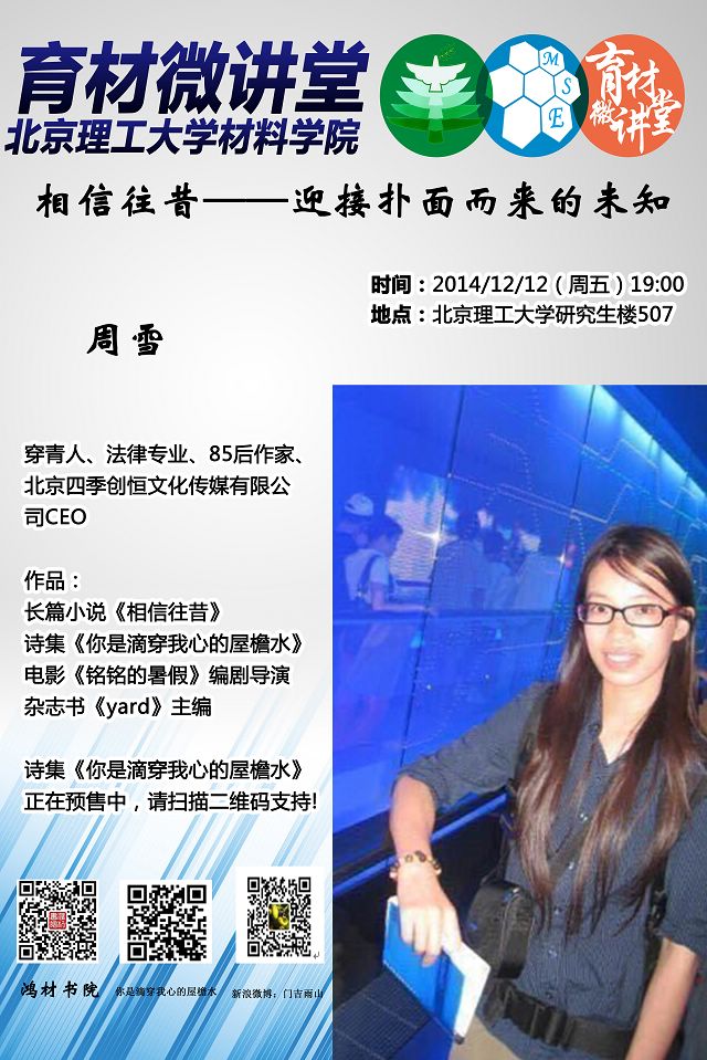 “育材微講堂”第十二期預告—周雪和她的《相信往昔》們