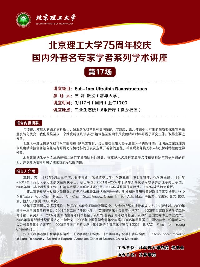 北京理工大學75周年校慶國內(nèi)外著名專家系列講座:王訓教授