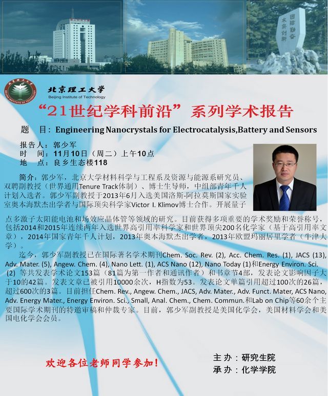 【化學學院】“21世紀學科前沿”郭少軍研究員學術報告通知