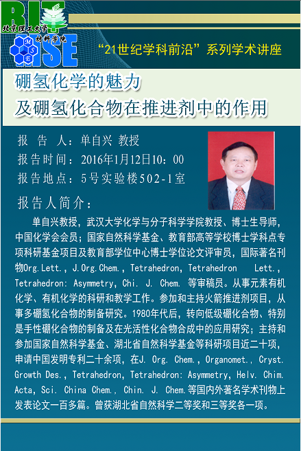 【材料學院】“21世紀學科前沿”單自興教授學術報告通知