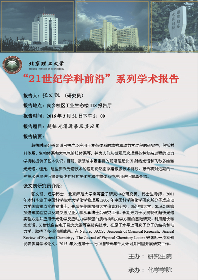 【化學學院】“21世紀學科前沿”張文凱研究員學術報告通知