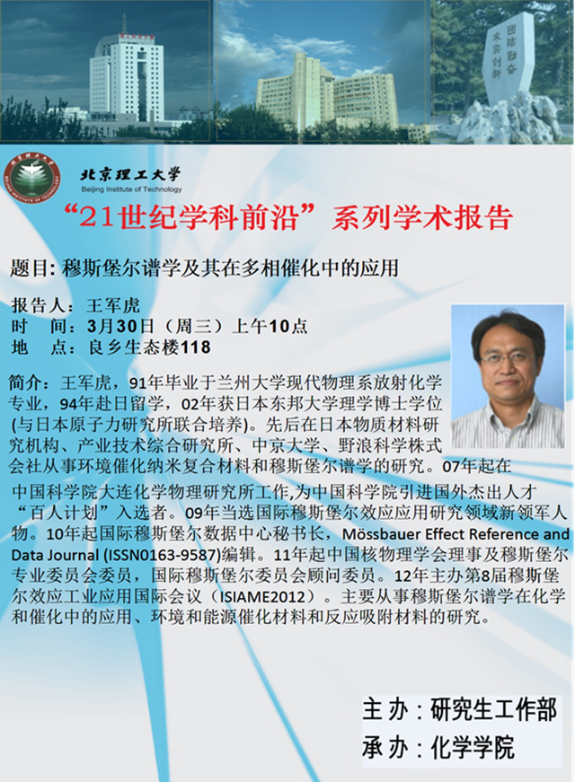 【化學學院】“21世紀學科前沿”王軍虎研究員學術報告通知