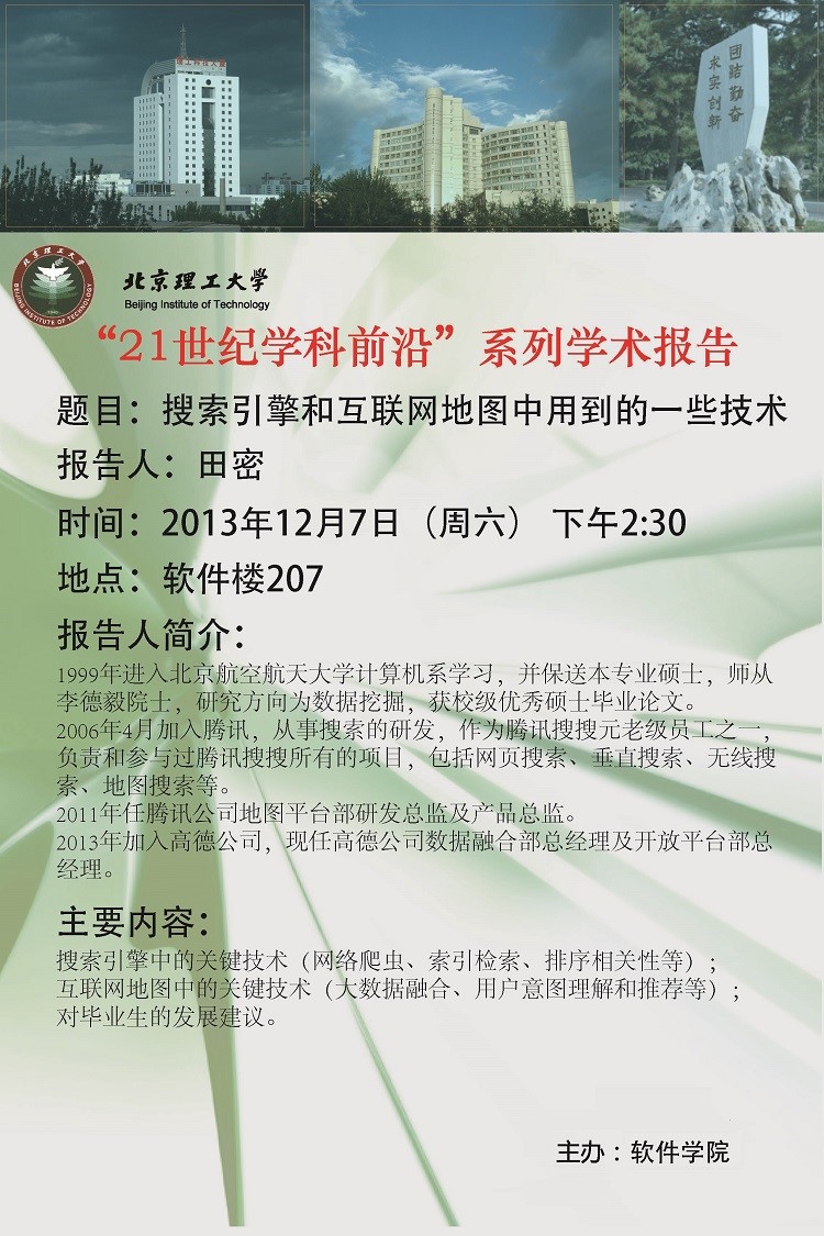 軟件學院"搜索引擎和互聯網地圖技術講座暨高德公司招聘會" 預告