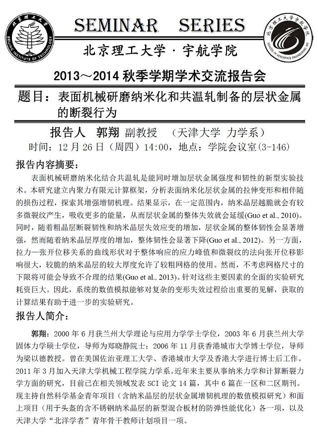 宇航學(xué)院12月26日學(xué)術(shù)報(bào)告預(yù)告