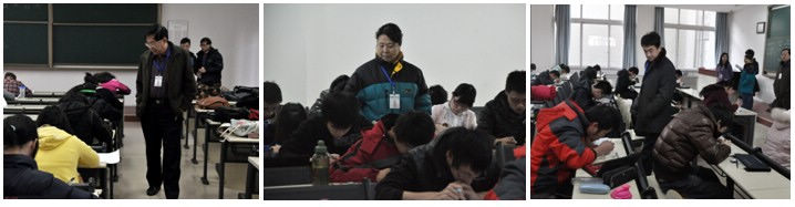 2011年1月17日是我校本科生期末考試周的第一天,兩個校區共有4000多名學生參加考試,監考、巡考教師200余人。一早,校黨委副書記、副校長李和章來到良鄉校區巡視期末考試,陪同李校長巡視的有教務處、學工處、基礎教育學院、團委等部門的負責人。李校長進入到部分考場檢查了考生座位安排,監考老師到位,學生證件核實等情況。每個考場監考老師認真負責,考生遵守考場紀律,秩序井然。