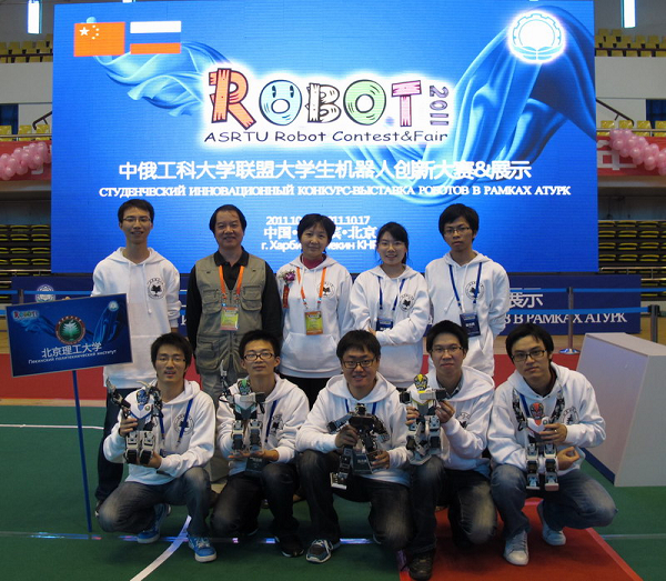 為加強中俄兩國大學生的科技與文化交流,提升兩國大學生的科技創新能力,增進"中俄工科大學聯盟"內各高校間的友誼,2011年10月12日,首屆"中俄工科大學聯盟大學生機器人創新大賽及展示"活動在哈爾濱工業大學隆重開幕,本次活動由哈爾濱工業大學聯合莫斯科鮑曼國立技術大學共同主辦。中俄兩國30所一流的工科院校紛紛攜帶最能代表本校大學生科技實力和創新精華的機器人與會。我校機電學院羅慶生老師帶領機器人代表隊參加了此次活動,趙顯利副校長參加了在北京理工大學舉行的閉幕式。