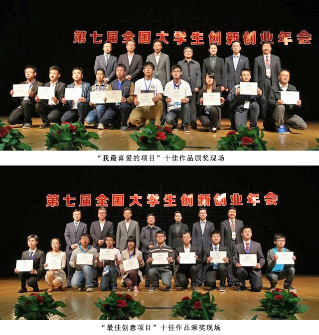 2014年10月21日,第七屆全國大學生創新創業年會在西安交通大學舉行。我校兩件參展作品“基于人體工學的穿戴式增力套裝”和“大角度矢量推進式水下多用途機器人”在學生代表評選的“我最喜愛的項目”與參會專家評選的“最佳創意項目”中均獨占鰲頭,在兩項投票中斬獲“我最喜愛的項目”十佳第一名、第二名,同時獲得“最佳創意項目”十佳第一名,第三名。這也是我校連續第七年在全國大學生創新創業年會中獲得“十佳”項目稱號。