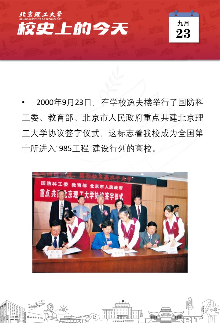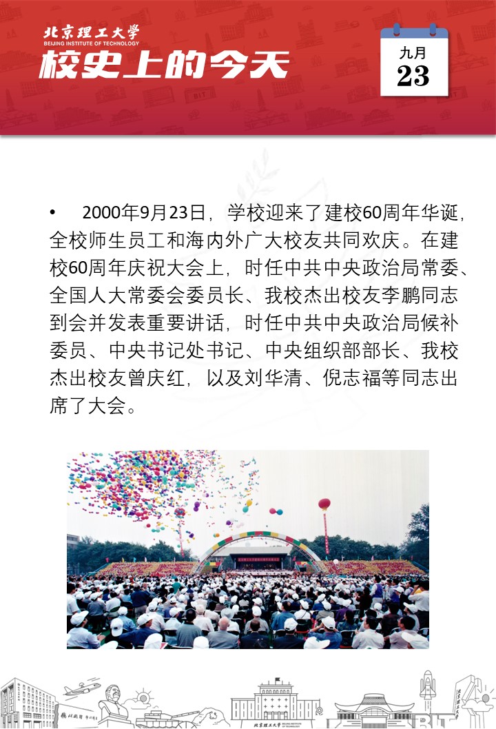 【編者按】2020年,北京理工大學即將迎來80周年校慶,為營造良好的校慶氛圍,黨委宣傳部推出《校史上的今天》欄目。該欄目根據校志,選取2005年前學校發展歷程中的重大事件和重要活動,按日期排序,并選配部分珍貴歷史圖片,反映了學校創建以來各個時期的關鍵時刻和辦學成就。《校史上的今天》將在學校官方微信、校園網等各個平臺進行發布。 回顧前輩足跡,重溫校史歲月,傳承北理精神,激勵新時代北理工人愛國、奮斗、追夢,為建設人民滿意中國特色世界一流大學做出新貢獻!