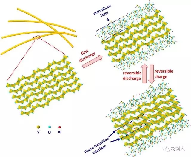 3 首周放電時,Al3+嵌入了V2O5納米線中形成亞穩態的無定形層,在放電時納米線中形成新相。