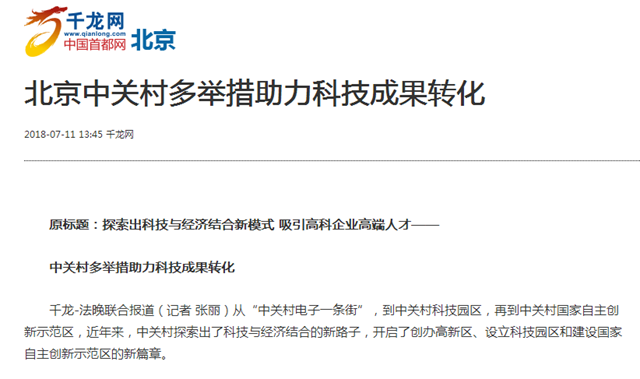 【千龍網】北京中關村多舉措助力科技成果轉化