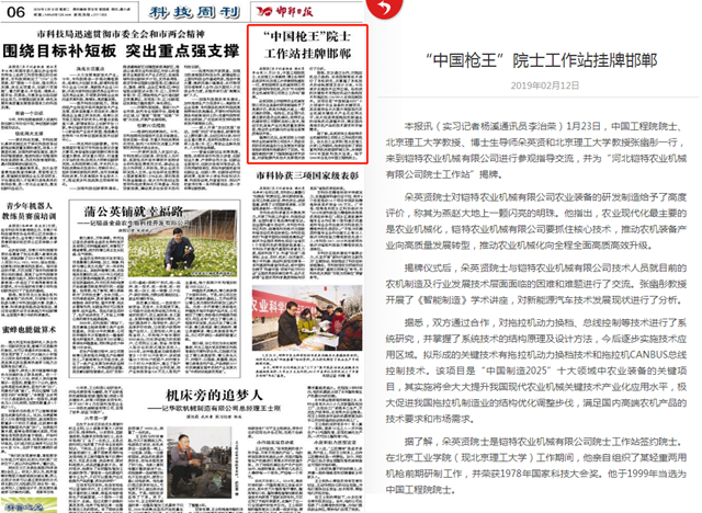【邯鄲日報】“中國槍王”院士工作站掛牌邯鄲