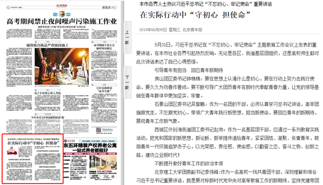 【北京青年報】在實際行動中“守初心 擔(dān)使命”