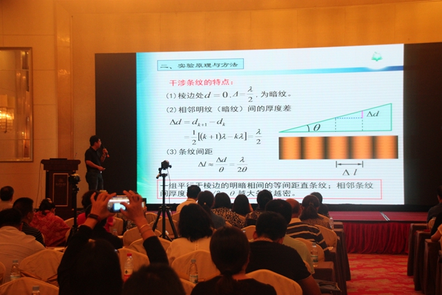 豐富的知識儲備,腳踏實地的付出,以及其在物理實驗課程編排上的“苦功夫”,成就了劉偉在教學工作中的優異成績。在第三屆 “高等教育杯”全國高等學校物理基礎課程青年教師講課比賽中,劉偉一路過關斬將,以第一名的成績通過北京市預賽,在之后的華北地區復賽中,再次斬獲第一名,并代表華北地區高校參加全國決賽。最終,經過激烈角逐,劉偉在決賽的12位優秀教師中脫穎而出,拿到了本屆比賽的全國一等獎。在頒獎典禮上,作為僅有的兩位一等獎獲得者之一,劉偉受組委會委托,還為400余位來自全國各高校的觀摩教師,做了“牛頓環與劈尖干涉實驗”的示范教學。