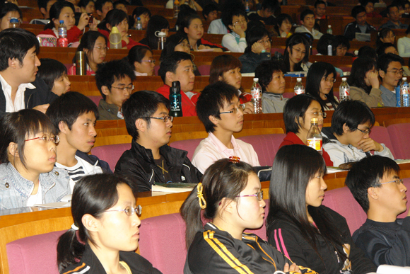 同學(xué)們對(duì)這次講座十分期待,早早地來(lái)到了會(huì)場(chǎng)。在一片熱烈的掌聲中,舒先生進(jìn)入了會(huì)場(chǎng)并很快開始了他的演講。