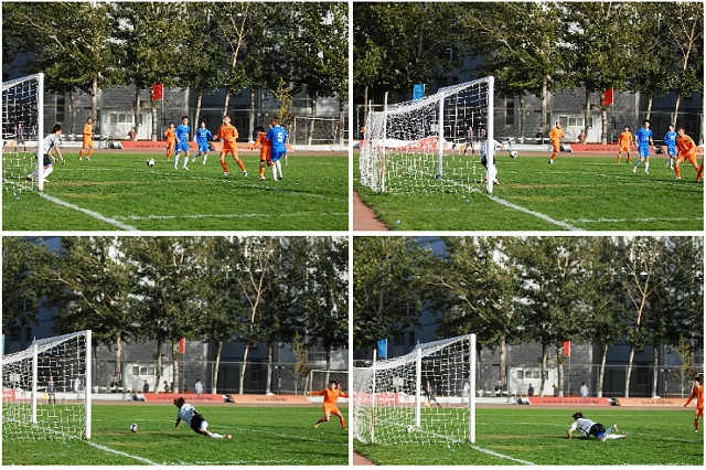 下半場(chǎng)比賽簡(jiǎn)直就成了雙方的射門表演,第57分鐘,理工前場(chǎng)搶斷后利用熟練的傳球連續(xù)圍攻安徽球門,但未能得手。但僅過了1分鐘,理工9號(hào)阿爾法便在左路擺脫過人后分給中路插上的隊(duì)長(zhǎng)袁微,袁得球后迅速橫傳禁區(qū),埃米爾左腳輕松掃射得手,學(xué)生軍又得一分,3:0。隨后,安徽隊(duì)還有幾次定位球角球機(jī)會(huì),但不是打高就是打偏。而學(xué)生軍三球領(lǐng)先后依舊是得勢(shì)不饒人,頻頻利用積極地跑位、熟練的配合以及充沛的體能與安徽隊(duì)大打快攻反擊,且效果頗為明顯。