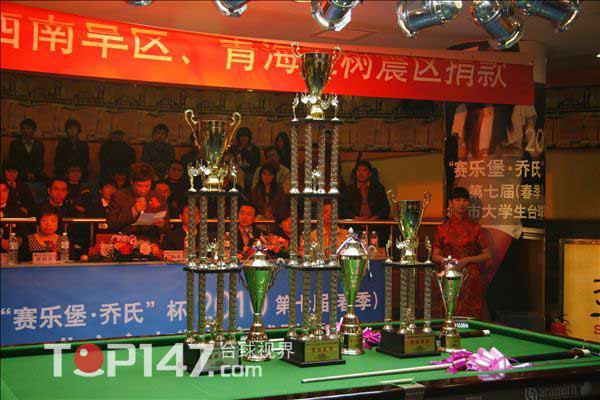 5月15日,為期一個半月的“賽樂堡喬氏杯”第七屆北京市大學生臺球聯賽落下帷幕,北京理工大學代表隊獲得團體賽冠軍、北京郵電大學獲得亞軍、北京吉利大學和首都師范大學分獲三四名。個人賽中首次參加聯賽的“黑馬”來自北京石油化工學院的馬愷一路過關斬將最終捧得冠軍獎杯。