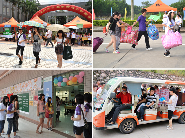為了在迎新報到期間做好服務工作,北理工珠海學院今年首次采用新生分專業在不同時間報到的方法,以求錯開報到高峰。迎新地點從往年的體育場改為中心教學樓,暑假建設完善的校內交通,加上迎新期間免費巴士和電瓶車的運行,大大緩解往年報到期間校內交通堵塞情況,提高報到效率。同時選擇安裝有空調的中心教學樓做迎新點,并提供專門的家長休息室,也是當初學校針對珠海天氣進行迎新策劃的人性化體現。