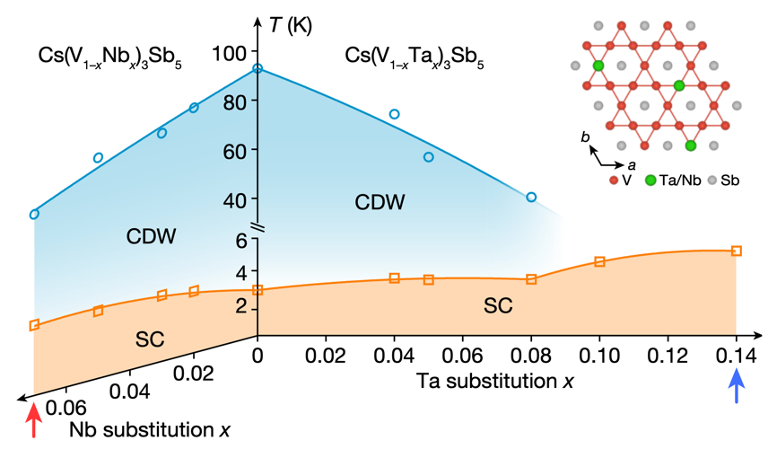 圖2.CsV3Sb5體系中元素替換的超導相圖