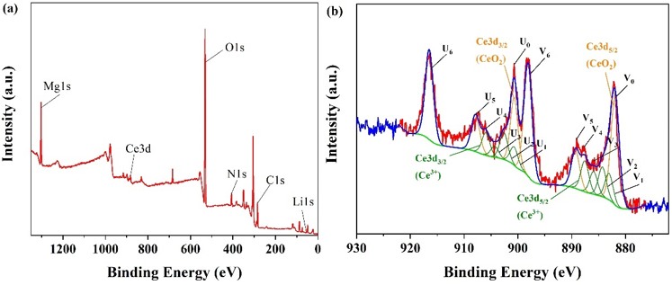 圖4 MgCeLi-8-6 脫水后產(chǎn)物的XPS圖