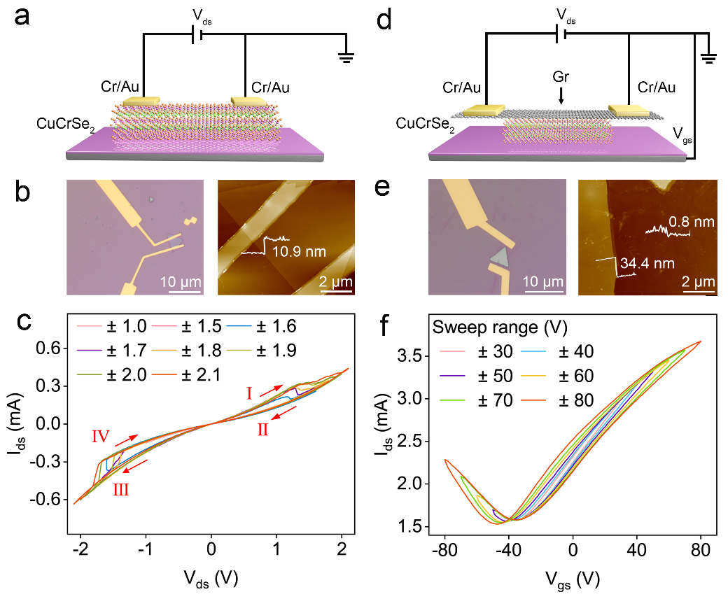 圖5.基于CuCrSe2鐵電器件的電學測量