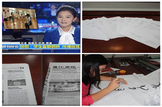 為了深入了解非遺的保護(hù)和傳承,感受傳統(tǒng)藝術(shù)的魅力,宣傳和弘揚(yáng)中華傳統(tǒng)文化,學(xué)院5為女生組成“鄉(xiāng)韻自多情”實(shí)踐團(tuán),團(tuán)隊(duì)調(diào)研了宛梆(河南內(nèi)鄉(xiāng))、常德絲弦(湖南常德)、十二木卡姆(新疆維吾爾自治區(qū))、桂劇(廣西)、淮劇(江蘇)五種藝術(shù),走訪了多家藝術(shù)表演團(tuán),采訪了數(shù)十位藝術(shù)表演家,收集到了詳實(shí)的第一手資料。經(jīng)過(guò)深入調(diào)研,實(shí)踐團(tuán)的同學(xué)們認(rèn)真分析了當(dāng)前非物質(zhì)文化遺產(chǎn)保護(hù)和傳承的現(xiàn)狀。最終“鄉(xiāng)韻自多情”實(shí)踐團(tuán)完成《藝術(shù)類非物質(zhì)文化遺產(chǎn)現(xiàn)狀與發(fā)展的調(diào)研》調(diào)研報(bào)告,并撰寫(xiě)《藝術(shù)類非物質(zhì)文化遺產(chǎn)保護(hù)建議書(shū)》,為保護(hù)藝術(shù)類非物質(zhì)文化遺產(chǎn)作出自己的貢獻(xiàn)。