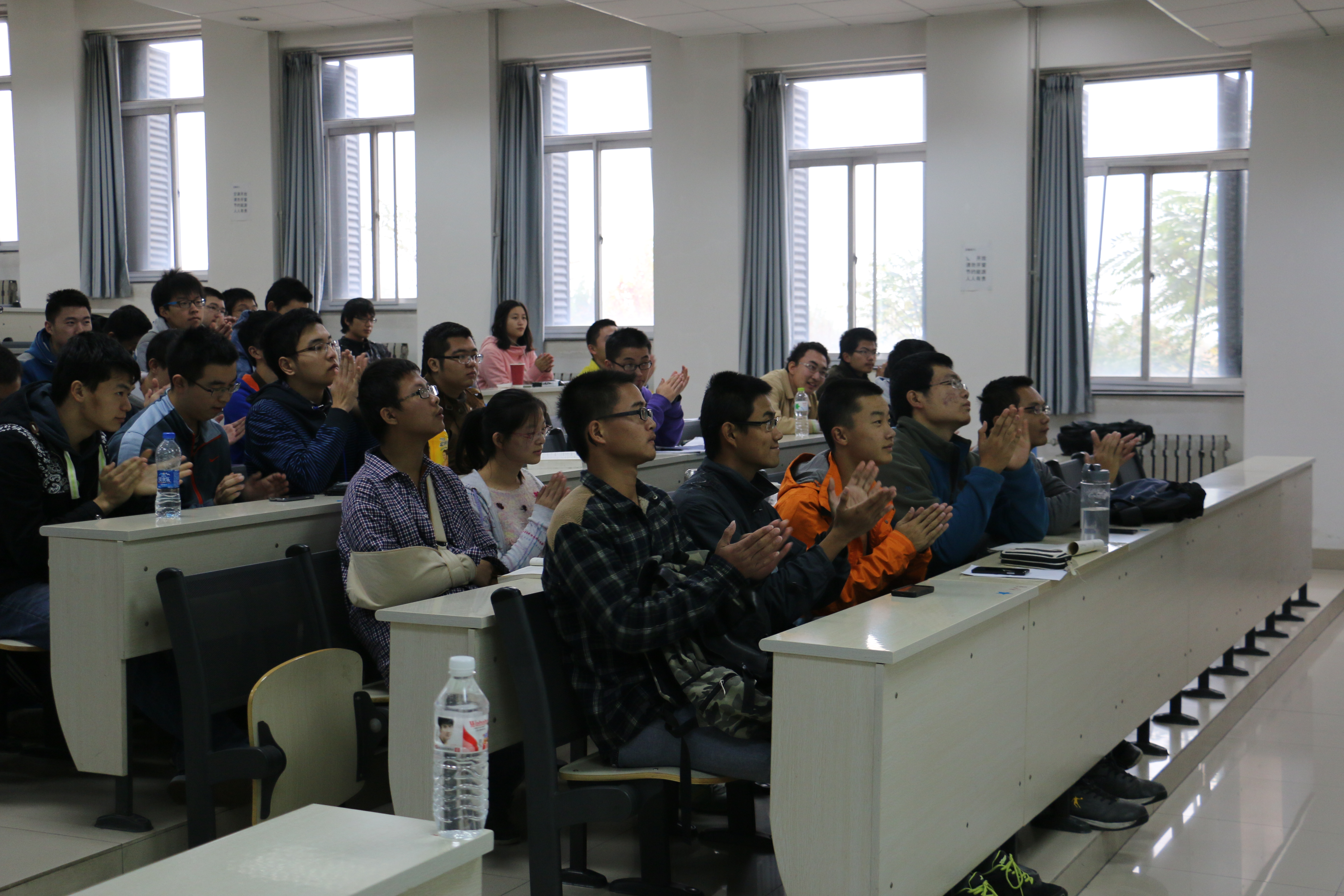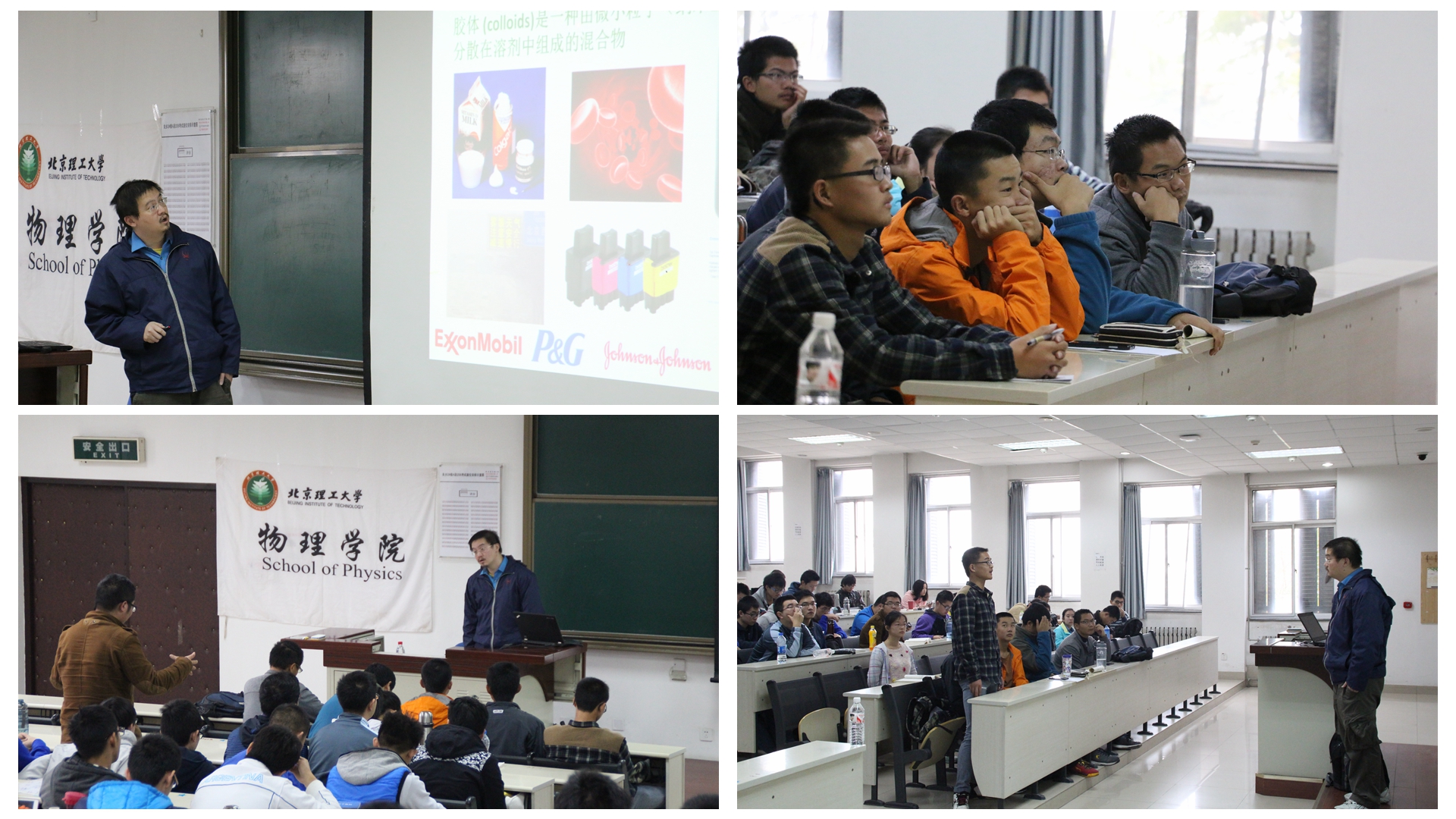 此次活動邀請到了中科院物理所的研究員陳科老師來良鄉(xiāng)為大家做題為“看得見的統(tǒng)計物理——膠體在物理中的應用”的主題報告。本次報告主要介紹通過現代實驗手段和分析技術,研究膠體體系中有趣的統(tǒng)計現象,包括其在平衡態(tài)和非平衡態(tài)統(tǒng)計中的應用,從而加深學生們對統(tǒng)計物理的了解與認識。在報告期間,同學們全神貫注,仔細聆聽;在報告結束后,同學們踴躍發(fā)言、積極提問,并將最熱烈的掌聲獻給了陳科老師。