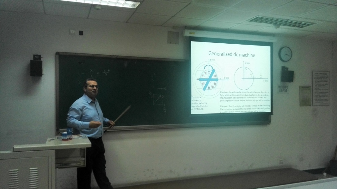 作為此次學術交流的組成部分之一,Sharkh教授為研究生講授了為期兩周的永磁同步電機設計及控制理論的相關課程,內容包括直流電機基本理論、永磁無刷直流電機本體設計及控制、永磁同步電機本體設計及控制,永磁同步電機無位置傳感器控制等,Sharkh教授的精彩講授受到了全體學生的一致好評。