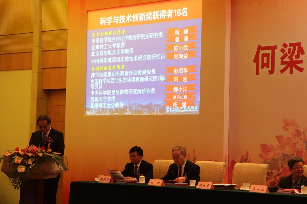 國務院副總理劉延東同志致函熱烈祝賀本次頒獎大會的召開,并代表國務院向獲獎科學家表示衷心祝賀。全國人大常委會張寶文副委員長,全國政協副主席、科技部部長萬鋼同志親臨大會指導并致辭,評選委員會主任朱麗蘭代表評選委員會做何梁何利基金2017年度評選工作報告。
