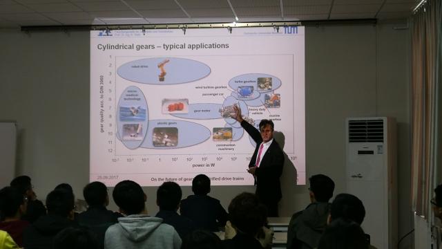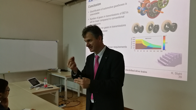 近日,德國慕尼黑工業大學機械系教授、德國齒輪研究中心(FZG)主任Karsten Stahl教授訪問機械與車輛學院并開展學術交流活動。訪問期間,Stahl教授做了題為“On the future of gear in electrified drive trains”的學術報告。Stahl教授重點介紹了齒輪傳動在當代乘用車的應用,在此基礎上介紹了電動車所用齒輪傳動,設計方法,齒輪在電動車中應用的必要性,存在的問題、發展趨勢,特別是結合與世界著名車企BMW合作進行電動車研發過程中齒輪傳動所要解決的功率密度問題、效率問題和噪聲的問題。Stahl教授報告內容豐富,講述生動,引起了與會師生的濃厚興趣,同學們就報告內容進行了深入討論。通過相關領域國際前沿知識的介紹,有助于拓展研究生的國際視野、夯實專業基礎、提高專業學習興趣。