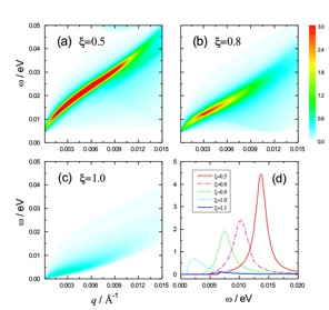 圖3:不同外場強度下等離激元的色散關系和相應能量損失函數