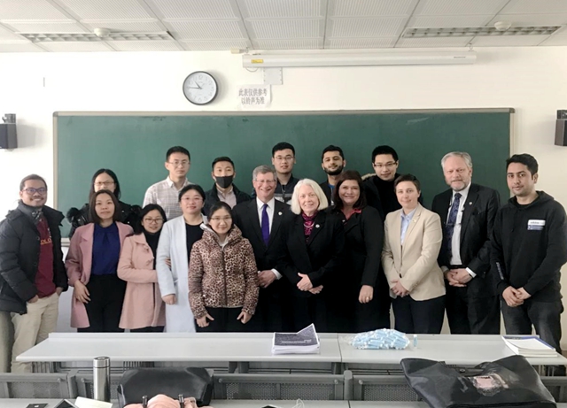 3月20日,科羅拉多州最高法院(Colorado Supreme Court)和司法實務機構一行五人抵達北理工,開始了為期4天的訪問。此次來訪的有科羅拉多州最高法院法官Scott Meiklejonh,科羅拉多州律師協助計劃(COLAP)執行理事Barbara Ezyk,科羅拉多州律師輔助計劃(CAMP)主任J. Ryann Peyton,司法監管辦公室副主任Margaret B. Funk,和有著二十多年從業經驗的律師Scott Meiklejohn。