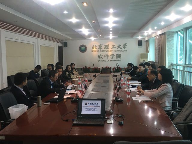 計算機學院黨委書記丁剛毅研究員致歡迎辭,并對學院總體情況做了介紹;副院長劉馳教授系統介紹了近五年與IBM在區塊鏈、大數據、人工智能等領域開展科研合作的情況;高廣宇副教授介紹了學校承辦中國IBM主機用戶大會的情況。丁剛毅和劉馳同Naguib博士團隊就IBM北京理工大學計算機學院在大數據技術、智慧校園建設等方面的合作可能進行了廣泛交流和深入探討,為學院未來校企合作打下了堅實的基礎。