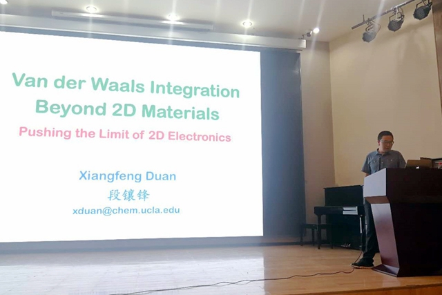 段鑲鋒教授作題為“Van der Waals Integration beyond 2D Materials-Pushing the Limit of 2D Electronics”的學術報告。他提出利用不同二維材料通過van der Waals分子間作用力構筑新型高效微納器件的理念,展示了近兩年發表于Nature和Science等期刊的研究成果。報告深入淺出,并與在場師生進行了熱烈的討論和交流。他也為材料學院的材料化學專業全英文教學、研究生國際化培養進行了指導。對提升我校新材料前沿研究國際交流、國際化人才培養等起到了很大的推動作用。