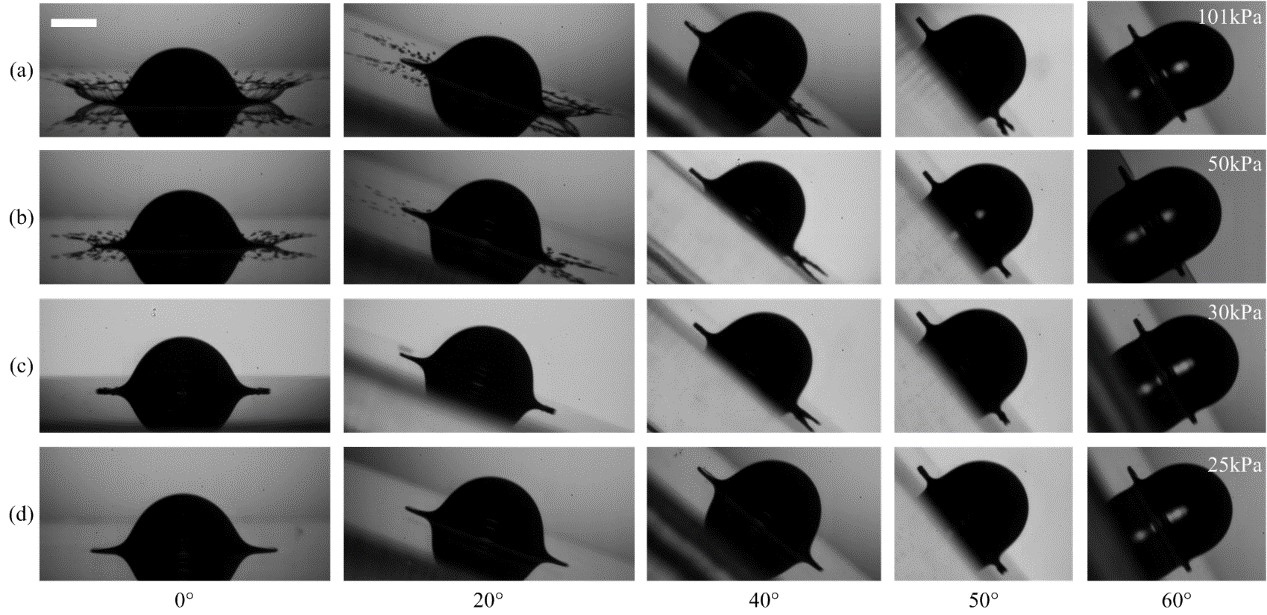 圖1 表面傾角和環境壓力對液滴飛濺的影響