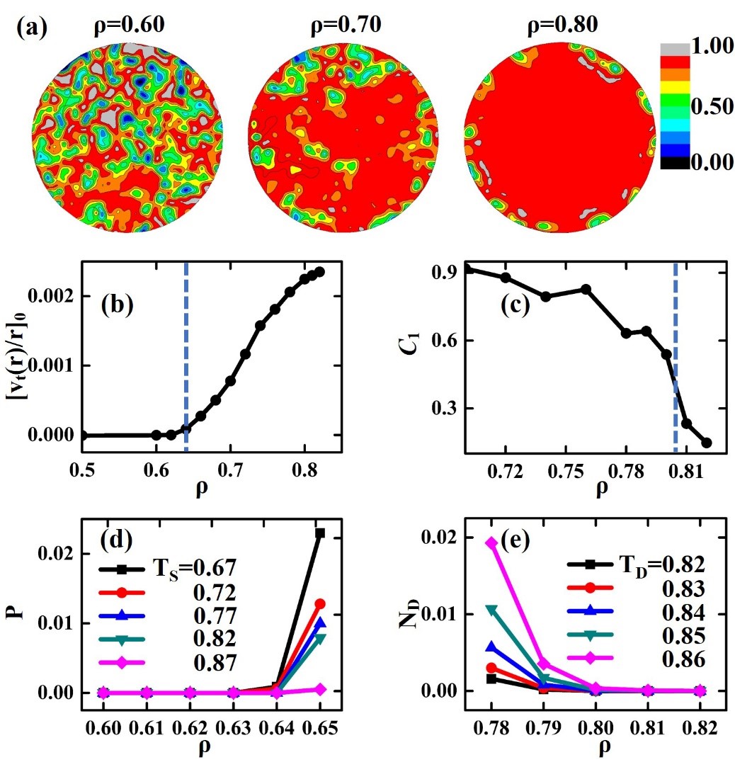由自驅(qū)動單元組成的活性物質(zhì),例如細(xì)菌溶液和自驅(qū)動膠體,是一類重要的軟物質(zhì)系統(tǒng)。由于其固有的非平衡特性,活性物質(zhì)經(jīng)常表現(xiàn)出奇特的行為,并在微器件與智能材料方面具有潛在的應(yīng)用價值。當(dāng)前,探索由自旋活性粒子組成的手性活性物質(zhì)(破缺宇稱和時間反演對稱性),并理解其反常的物理行為,是軟物質(zhì)領(lǐng)域的一個研究熱點(diǎn)。手性活性物質(zhì)的一個特別有趣的現(xiàn)象是:它在受限條件下可以出現(xiàn)自發(fā)的單向集體邊緣流,這種邊緣流甚至是受拓?fù)浔Wo(hù)的,具有穩(wěn)定的物料輸運(yùn)能力。對這一獨(dú)特現(xiàn)象的理解通常是基于不可壓縮、無結(jié)構(gòu)的均質(zhì)流體理論框架。大量研究表明,自旋粒子與約束邊界的相互作用對邊緣流的出現(xiàn)起著至關(guān)重要的作用。然而,除了這種直接的相互作用,由于粒子位置的關(guān)聯(lián)性,約束還會導(dǎo)致空間上不均勻的粒子密度分布。密度不均勻性普遍存在于受限的多體系統(tǒng)中,它對手性活性物質(zhì)集體行為的影響仍不清楚。