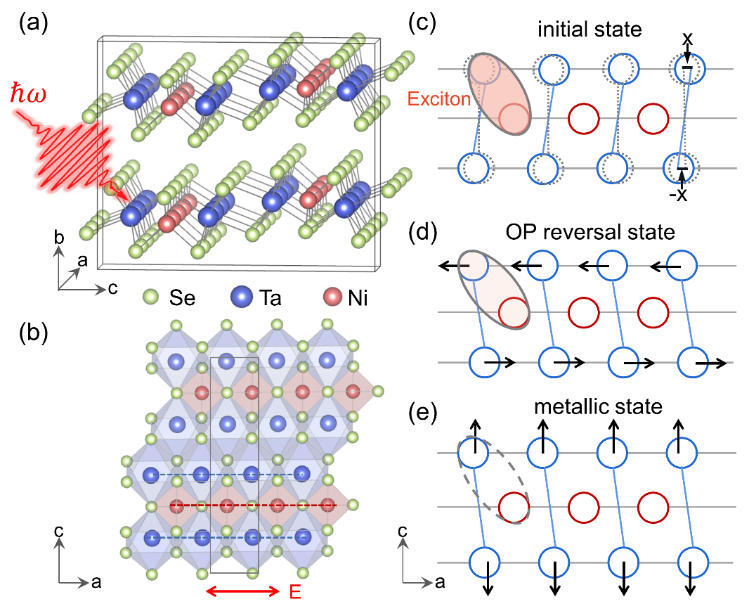 圖1. Ta2NiSe5在超快光激發(fā)前后的特征原子結(jié)構(gòu)。