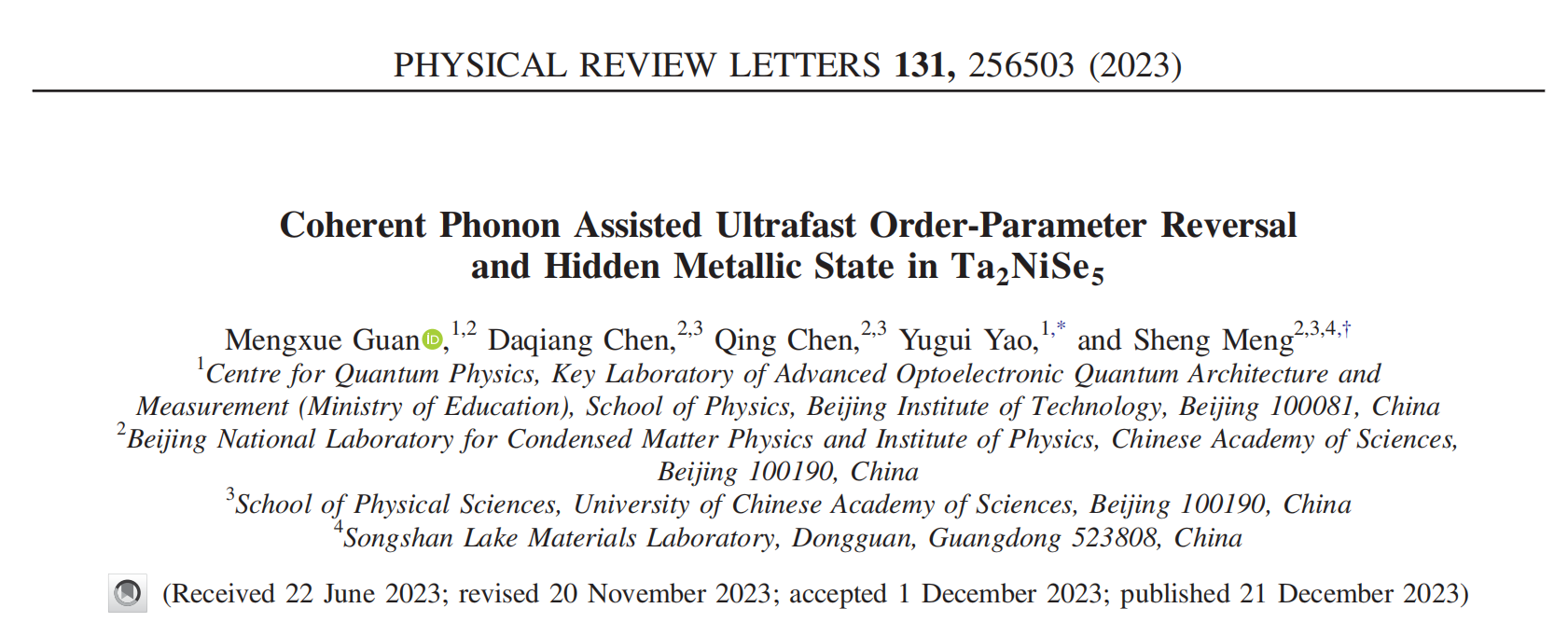 日前,北京理工大學(xué)物理學(xué)院姚裕貴、關(guān)夢(mèng)雪特別研究員和中國(guó)科學(xué)院物理研究所的孟勝研究員團(tuán)隊(duì)展開合作,利用非絕熱含時(shí)密度泛函分子動(dòng)力學(xué)(TDDFT-MD)方法深入探究了Ta2NiSe5中的非平衡多體相互作用。研究明確了晶格序參量在光誘導(dǎo)絕緣體-金屬轉(zhuǎn)變過(guò)程中的關(guān)鍵作用,為理解關(guān)聯(lián)量子材料中激子-聲子動(dòng)力學(xué)提供了全面的視角。相關(guān)研究題目為《Coherent Phonon Assisted Ultrafast Order-Parameter Reversal and Hidden Metallic State in Ta2NiSe5》,成果被發(fā)表在物理學(xué)領(lǐng)域的頂級(jí)期刊Physical Review Letters上。