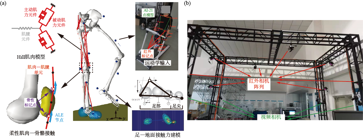 圖4 人體肌骨系統多體動力學模擬與混合動作捕捉實驗平臺