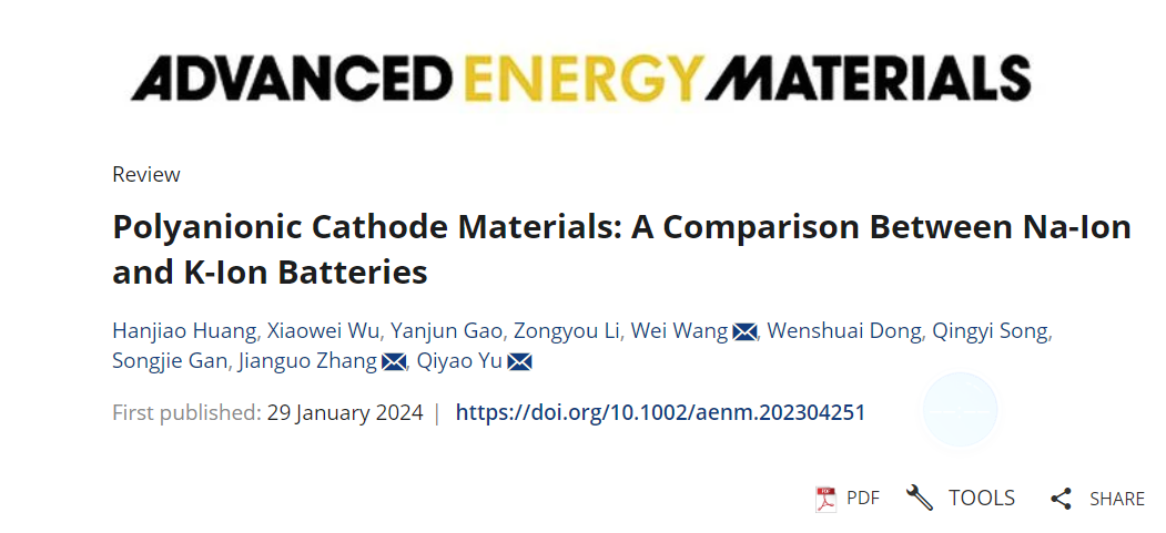 近日,北京理工大學機電學院張建國教授團隊在國際頂級期刊《Advanced Energy Materials》(影響因子27.800)發表題為《Polyanionic Cathode Materials: A Comparison between Na-ion and K-ion Batteries》的綜述,文章綜述了聚陰離子正極材料在鈉/鉀離子電池中的結構和性能上的差異。本單位通訊作者為張建國教授、于琪瑤副教授,第一作者為北京理工大學機電學院2022級碩士生黃瀚蛟。