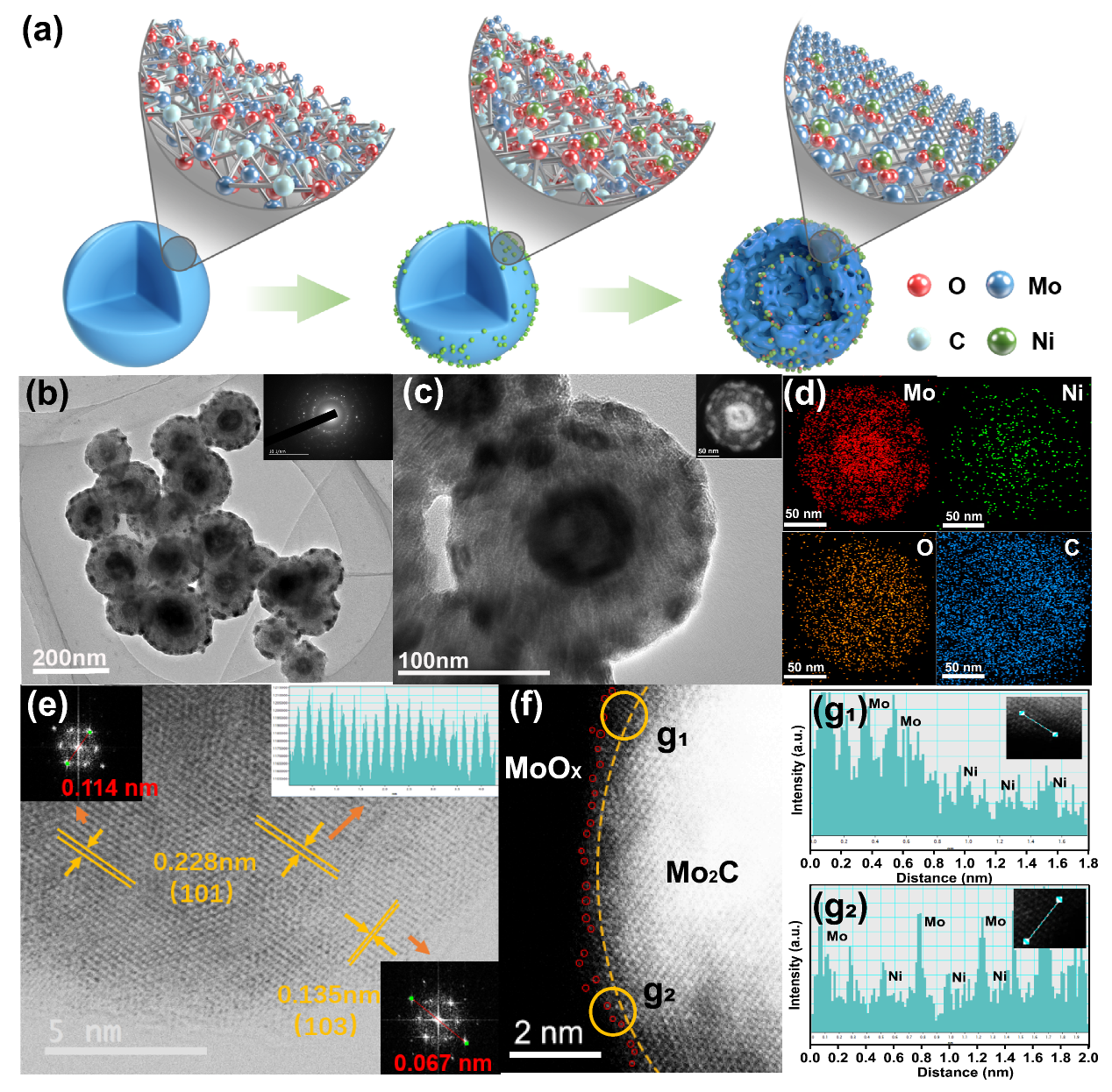 圖1. NiSA-O/Mo2C的制備過程及形貌表征。