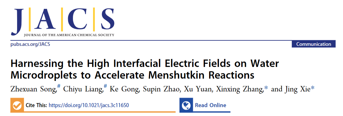 近日,北京理工大學化學與化工學院謝靜教授團隊和南開大學張新星教授團隊合作,在微液滴加速有機化學反應方面取得進展。相關研究成果以“Harnessing the High Interfacial Electric Fields on Water Microdroplet to Accelerate Menshutkin Reactions”為題發表于國際權威期刊《Journal of the American Chemical Society》。北京理工大學謝靜教授和南開大學張新星教授為論文共同通訊作者,北京理工大學為第一單位。該研究課題得到了國家自然科學基金項目、北京理工大學特立青年學者項目等資助。