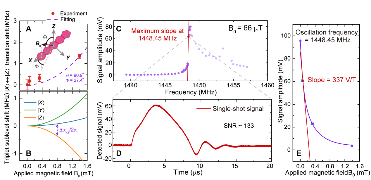圖2. 并五苯自旋系綜磁力儀性能測試。