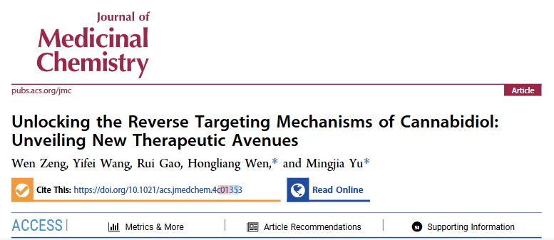 8月2日,北京理工大學化學與化工學院于明加副研究員和溫鴻亮副教授帶領的團隊在國際權威期刊Journal of Medicinal Chemistry發表了題為“Unlocking the Reverse Targeting Mechanisms of Cannabidiol: Unveiling New Therapeutic Avenues”的研究論文(DOI: 10.1021/acs.jmedchem.4c01353)。該團隊在針對大麻二酚分子機制的深入研究中取得了重要進展,特別是其作為部分激動劑與GPR18靶點蛋白相互作用方面的新發現。這一成果不僅加深了我們對大麻二酚生物活性的理解,也為未來基于大麻二酚的新型藥物的開發奠定了理論基礎。