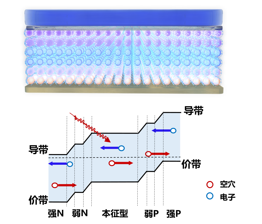 量子點梯度同質結器件與能帶示意圖
